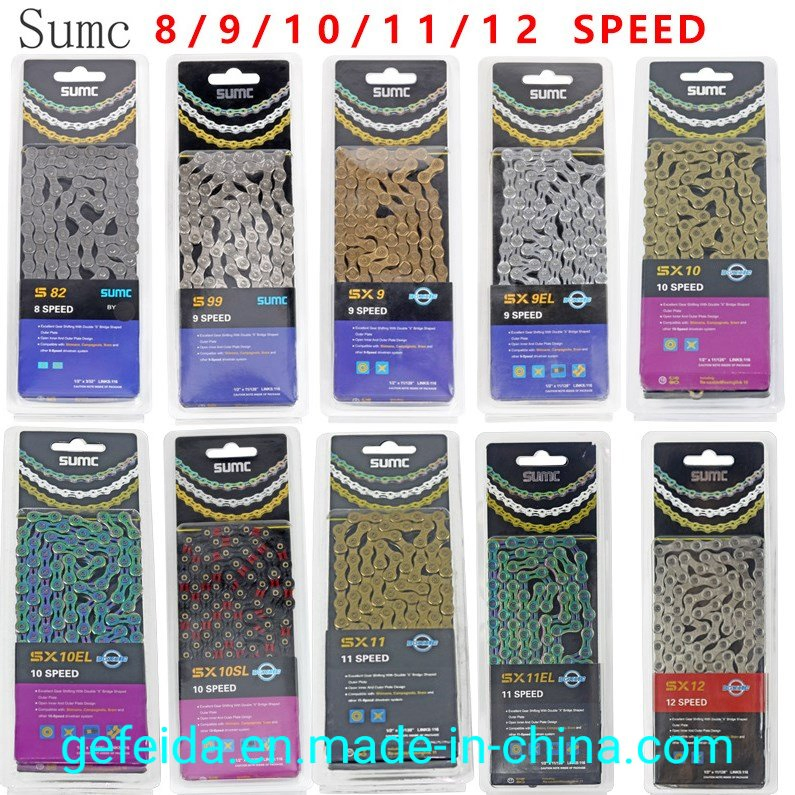 Bicycle Transmission Parts SUMC Bike Bicycle Chain S82/ S99/ SX9/ SX10/ SX11/SX11EL/SX12 8/9/10/11/12 Speed Bicycle ChainProduct DescriptionModelS82/ S99/ SX9/ SX10/ SX11/SX11EL/SX12Materialsteel Colorsilvery, colorful, titanium gold Weight260g-330g Speed6/7/8/9/10/11/12 speed Catalogue Bicycle chai......