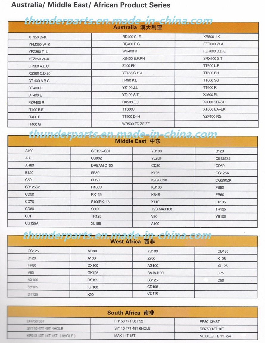 | HONDA | CG150/200/250,CGL125,XL125,GL125 KYY,CBF125 KTT,CB110,CBR190,CB125, XR150,CRF230,NXR125,WAVE110,WH125,CBX125,BIZ110,XL200,JH70 ETC |