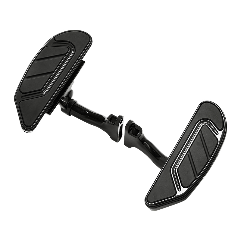 Black passenger floorboard mounting brackets and black floorboards